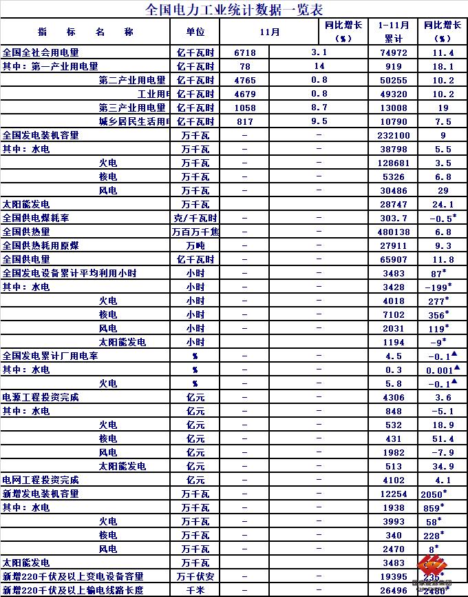注:1.全社會用電量為全口徑數(shù)據(jù),全國供電量為調(diào)度口徑數(shù)據(jù)。2.“同比增長”列中,標(biāo)*的指標(biāo)為絕對量;標(biāo)▲的指標(biāo)為百分點(diǎn)。